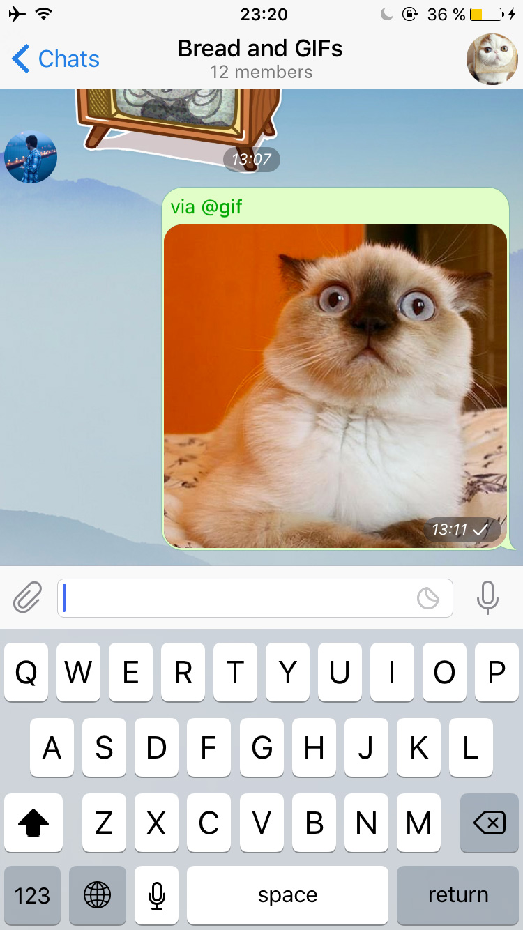 With the new inline mode, bots become omnipresent and can be used as a tool in any of your chats, groups or channels – it doesn't matter, whether the bot is a member or not. Inline bots can help you with dozens of different tasks, like quickly sending relevant GIFs, pictures from the Web, YouTube videos, Wikipedia articles, etc.